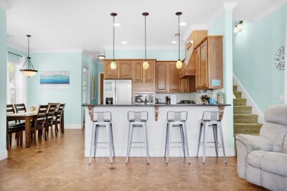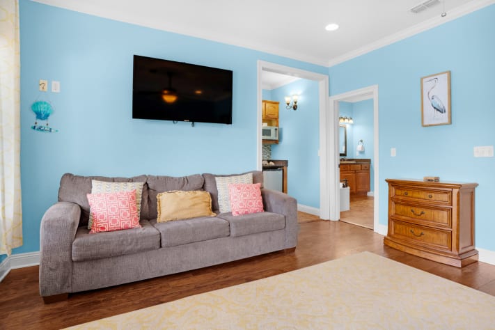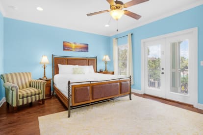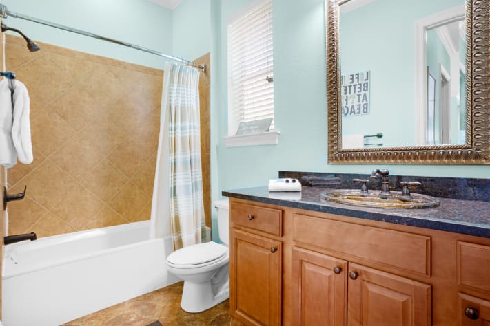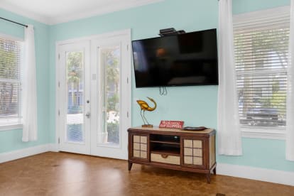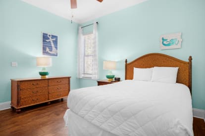 Villages of Crystal Beach is an exclusive, gated community only a few blocks from the beautiful blue waters and white sandy beaches of Destin. You can make the walk on foot or hop on the free seasonal trolley service (Memorial Day through Labor Day): they will even pick you up at the house and drop you off right at the beach! The pool area at Villages of Crystal Beach is a vacation must! The lagoon style zero entry pool is 30,000 square feet of gorgeous, sparkling clear water. There is a spa, tropical landscaping, and plenty of seating areas. It also has surround sound, a flat screen TV, and a grilling area to help you relax and unwind.
