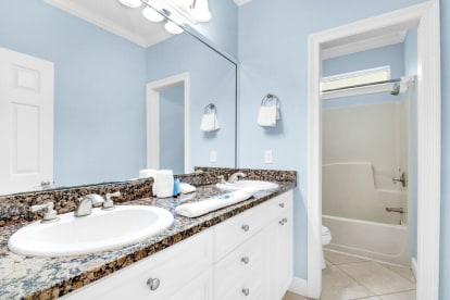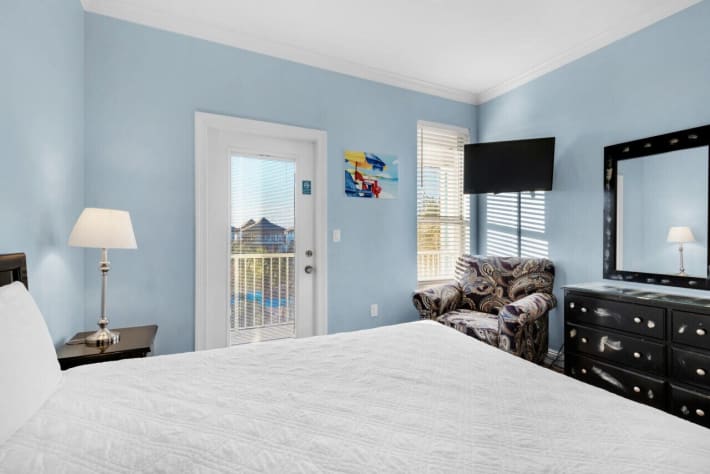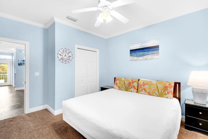 Your group will enjoy a relaxing vacation in this beautiful home FACING THE POOL in the Villages of Crystal Beach. Skip`s Delight is a lovely 6 bedroom, 3.5 bath home that sleeps 16. The kitchen features stainless steel appliances, tile floors and granite countertops. All bedrooms are ample size with Smart TV/DVD players! Enjoy the pool view from the balconies on the 2nd and 3rd floors. There`s a grill at the house and one in the pool area.Skip`s Delight also has a full-sized laundry room with a washer and dryer, two parking spots in the driveway, as well as additional overflow parking. This house is located right across the street from the pool! Nearby are 6 miles of paved trails - perfect for both walking and biking.