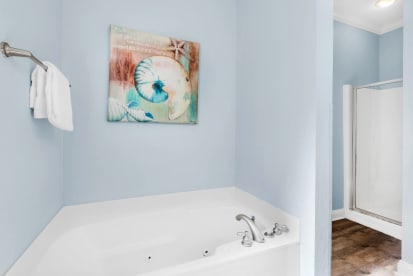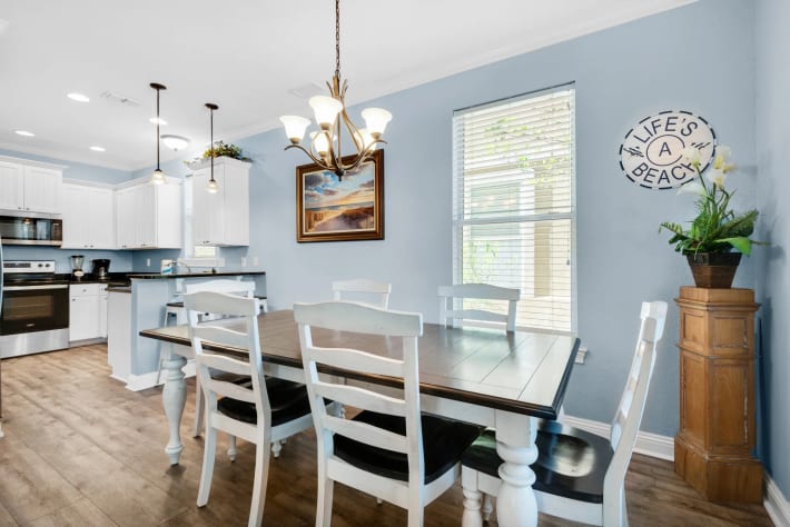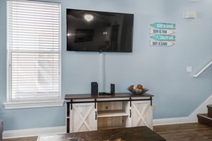 Villages of Crystal Beach is an exclusive, gated community only a few blocks from the beautiful blue waters and white sandy beaches of Destin. You can make the walk on foot or hop on the free seasonal trolley service (Memorial Day through Labor Day): they will even pick you up at the house and drop you off right at the beach! The pool area at Villages of Crystal Beach is a vacation must! The lagoon style zero entry pool is 30,000 square feet of gorgeous, sparkling clear water. There is a spa, tropical landscaping, and plenty of seating areas. It also has surround sound, a flat screen TV, and a grilling area to help you relax and unwind.